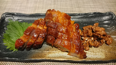 残念ながらこの日の焼き物は、燒鴨はなく叉燒のみということで、叉燒。それから、胡桃の飴炊きの盛り合わせ。